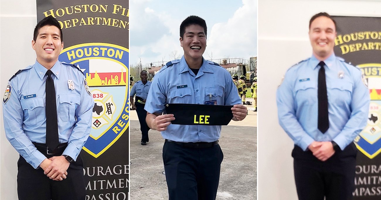 한인 3명이 휴스턴소방관으로 근무를 시작한다. 김다니엘(Daniel Kim·사진 맨 왼쪽), 이다니엘(Daniel Lee·사진 가운데), 그리고 라인 요스트(Ryne Yost·사진 맨 오른쪽) 등 3명의