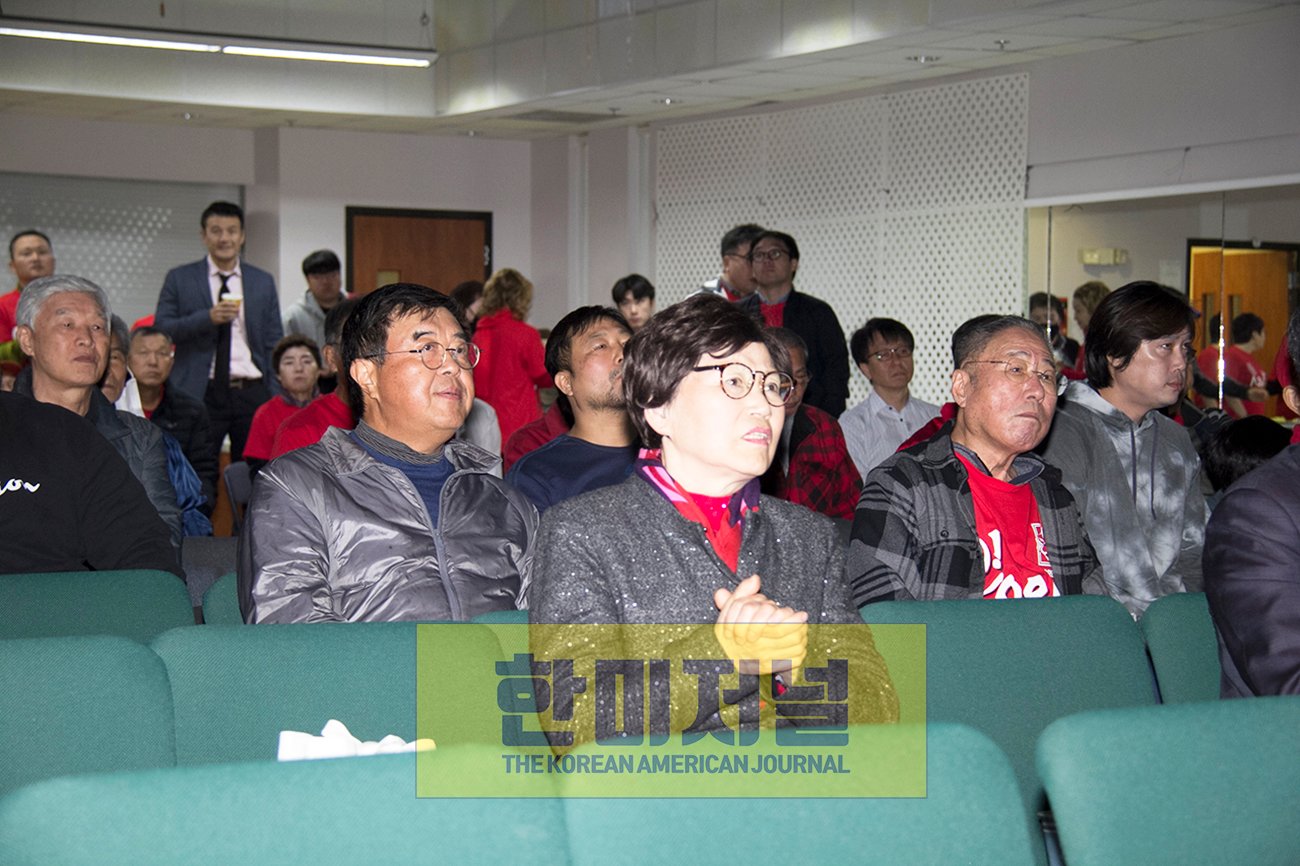 비록 이른 시간이었지만 한인회관에 모인 동포들은 체육회가 제공한 붉은 티셔츠를 입은 남녀노소 불문하고 한목소리로 한국선수들을 응원했고, 한국선수가 마침내 골을 넣었을 때는 환호성을 지르며 기뻐했다.