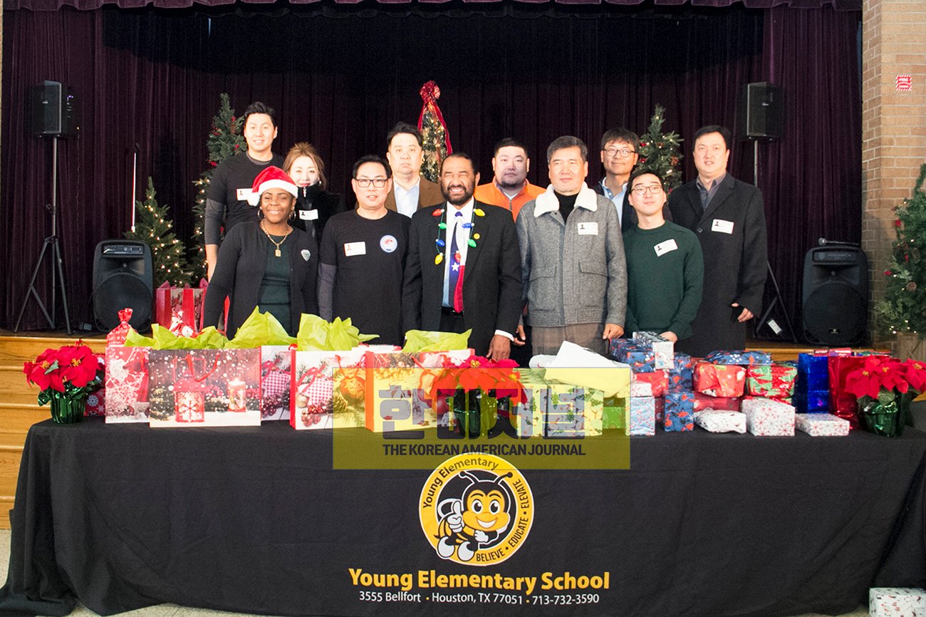휴스턴한인상공회(회장 강문선)와 휴스턴뷰티서플라이협회(회장 이원일)는 19일(월) 에델모슬리영초등학교(Ethel Mosley Young Elementary)를 방문해 이 학교 학생 150여명에게 크리스마스 선물을 전달했다.