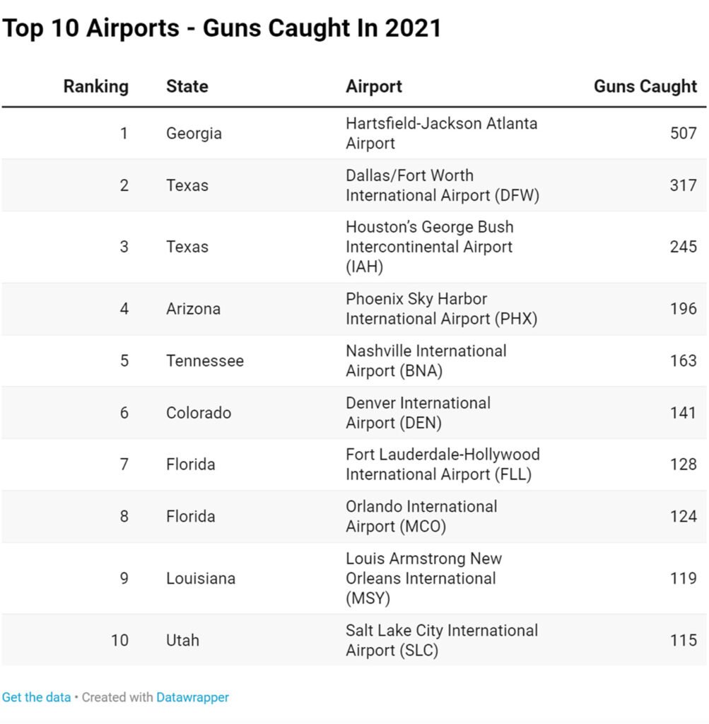 2021년에는 5,972정의 총기가 공항에서 압수됐다.