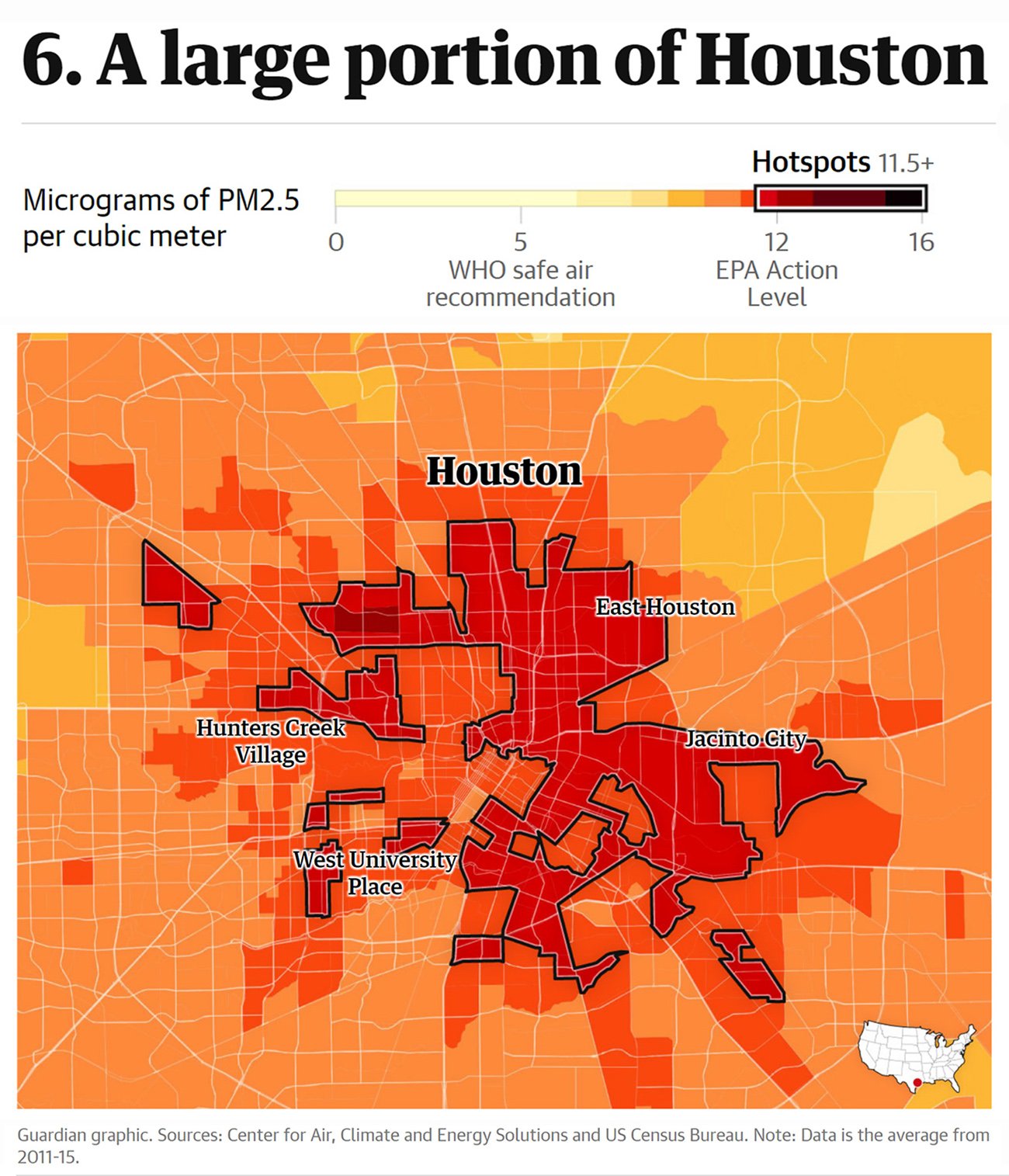휴스턴 공기가 나쁘다는 평가가 나왔다. 영국 일간지 가디언이 8일(수) 미국에서 공기가 가장 나쁜 도시를 조사해 순위를 발표했는데, 휴스턴이 6위에 올랐다.