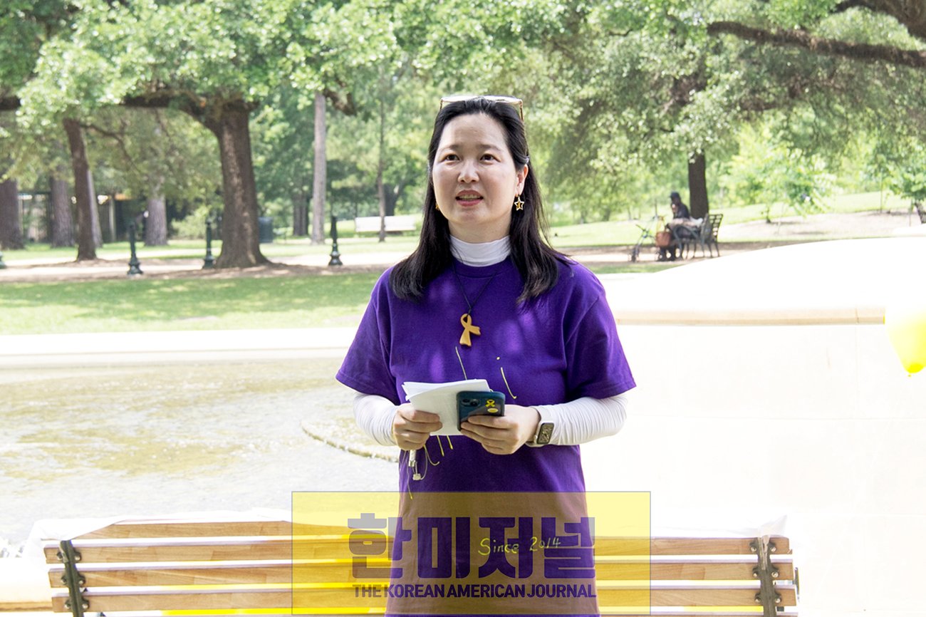 휴스턴비전교회 강주환 목사의 기도에 이어 구보경 함께맞는비 회장이 ‘세월호 참사 9주기 추도사’를 낭독했다.