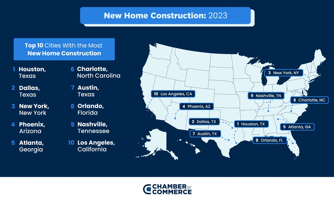 상공회는 올해 휴스턴에서 15,391채의 신축주택이 건축된다며, 이는 텍사스 달라스(12,738채), 조지아 애틀랜타(7,385채), 그리고 애리조나 피닉스(6,597채)보다 많은 물량이라고 설명했다.