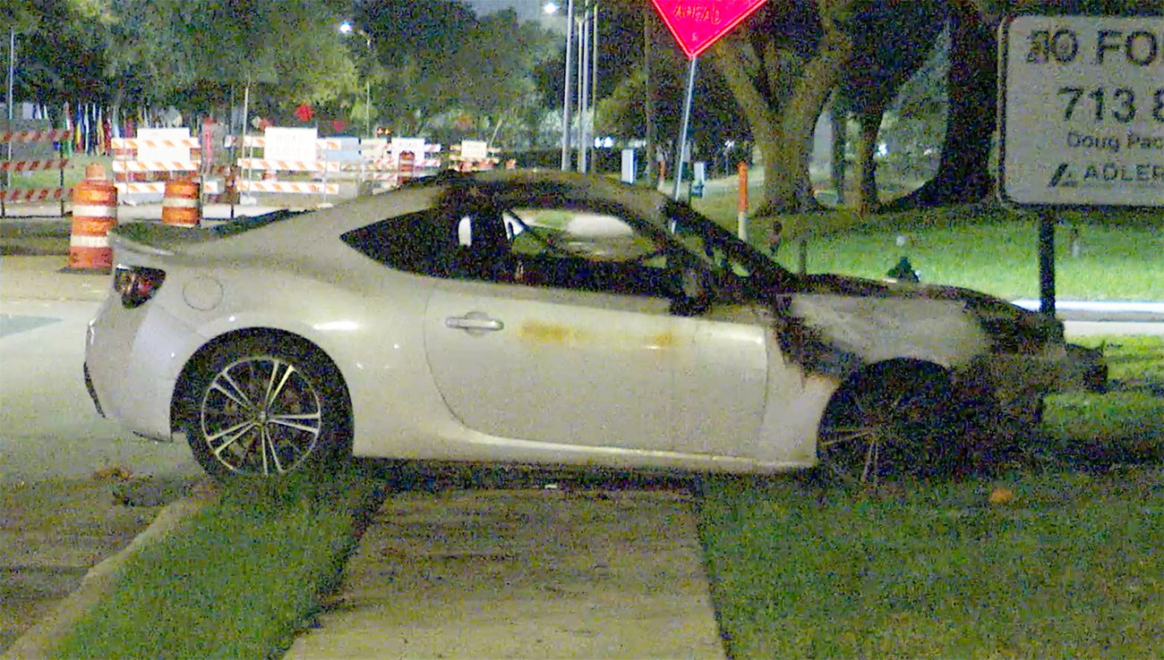KPRC-TV 26일 휴스턴에서 여성 운전자의 차가 전동스쿠터를 타고 가는 사람을 친 후 나무에 처박히면서 화재가 발생하는 사고가 발생했다고 전했다. 전통스쿠터를