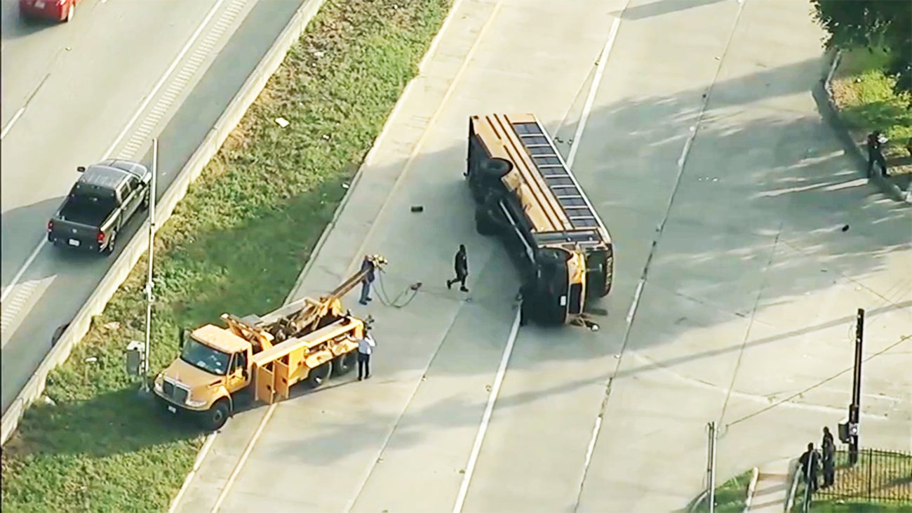 휴스턴에서 스쿨버스가 전복되는 사고가 발생했다. 지상파 ABC 휴스턴 지역방송국 KTRK-TV는 등굣길에 학생을 태우고 가던 스쿨버스가 승용차와 충돌하면서 뒤집히는 사고가 일어났다고