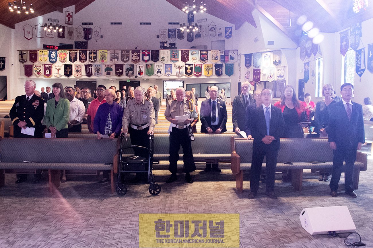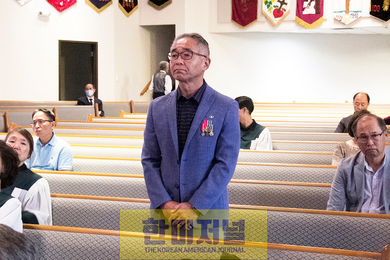 가슴에 5개의 훈장을 달고 이날 행사에 참석했던 한인은 앉았던 자리에서 일어다 한국전참전 미군용사들이 전우들의 이름을 호명하는 동안 내내 미동 없이 서있었다.