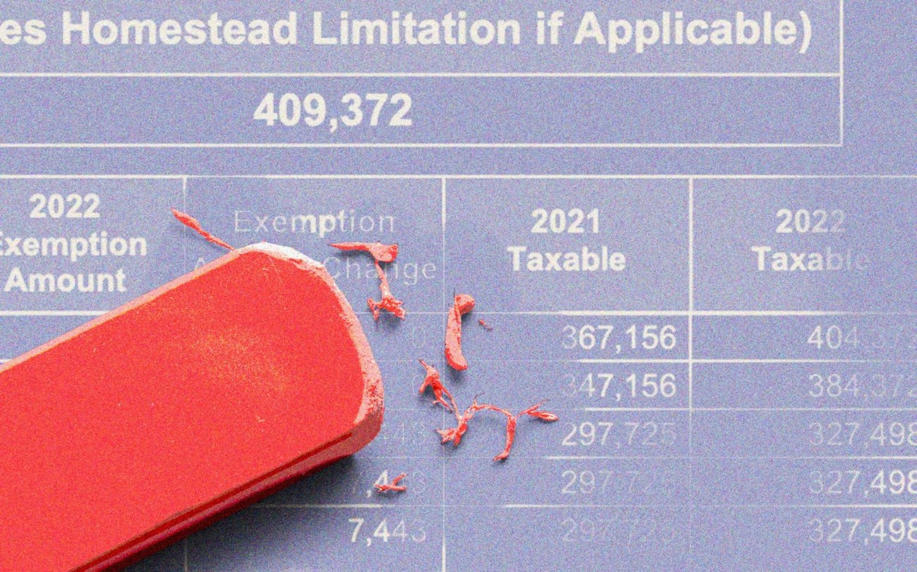 이 내용에 따르면 카운티부동산감정국이 집값을 300,000달러로 공시한 주택의 집주인은 법안통과 이전에는 40,000달러를 공제받을 수 있었다. 따라서 300,000달러에서 40,000달러를 공제한 260,000달러에 대해 부동산세가 부과된다.