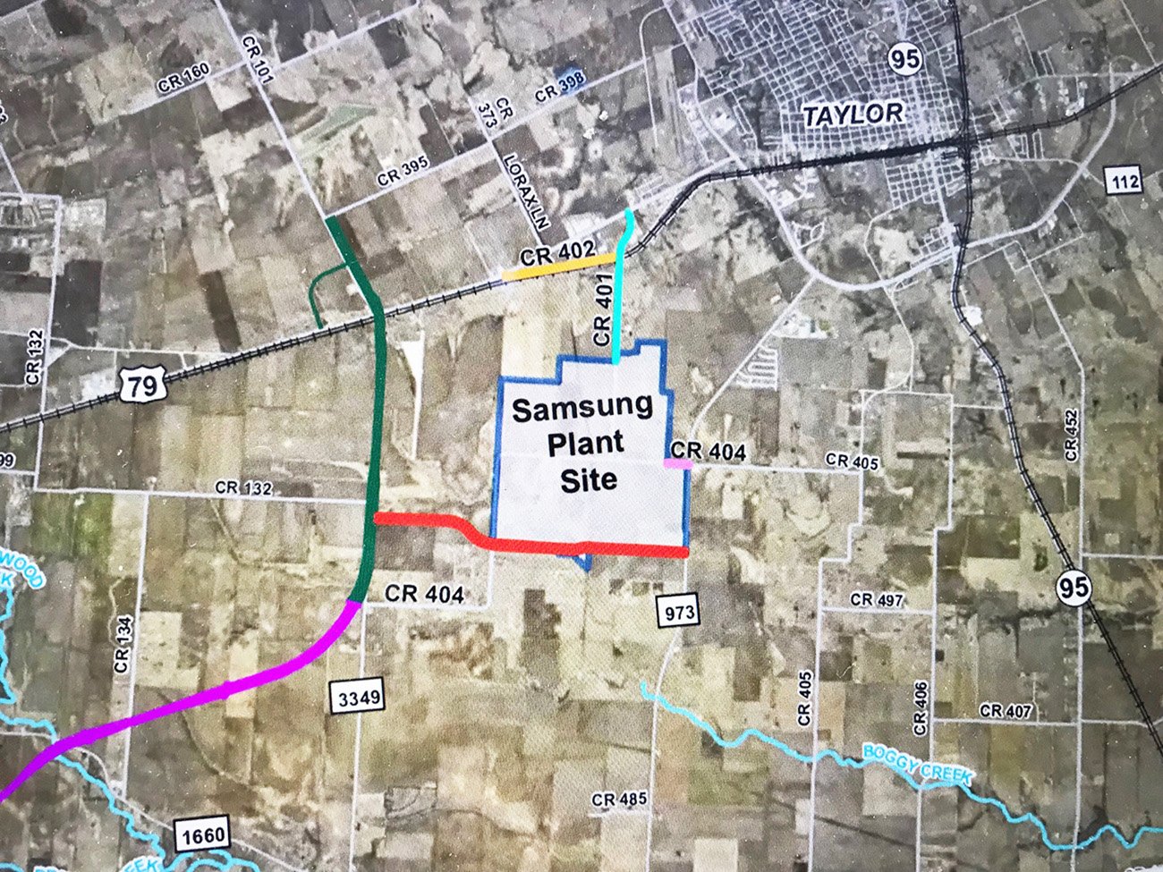 제2 삼성반도체 공장이 들어서는 테일러(Taylor)가 속해 있는 윌리엄슨카운티커미셔너코트(Williamson County Commissioners Court)는 지난해 12월 삼성반도체공장 근처를 지나는 카운티도로 일부 구간(CR 404 to FM 973)을 “삼성고속도로”로 명명하기로 결정했다.