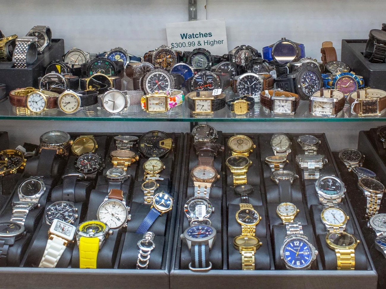 여기에 루이뷔통과 샤넬 가방과 프라다 신발, 그리고 롤렉스 등 시계들도 진열대에서 팔리고 있다.
