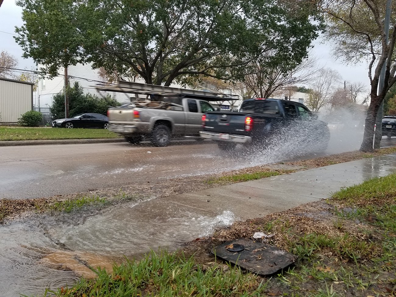 13일(수) H마트가 위치한 블레이락 도로에서 수도관이 파열돼 인도에서 뿜어져 나온 수돗물이 차도로 흘러가 차량이 지나갈 때마다 차도에 흥건히 고여있던 수돗물이