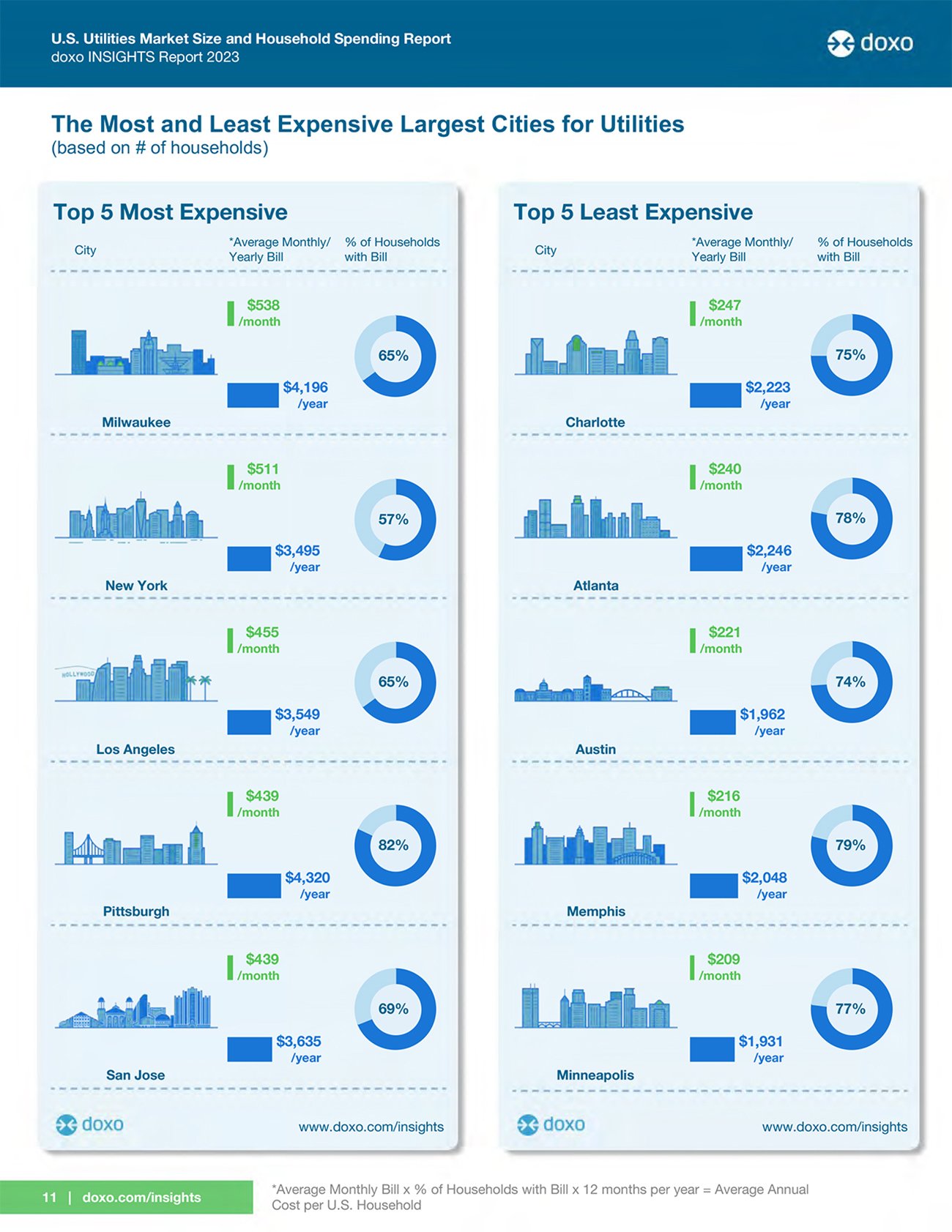 미니에폴리스에 이어 테네시 멤피스($216), 텍사스 어스틴($221), 조지아 애틀랜타($240), 그리고 노스캐롤라이나 샬럿($247) 순으로 유틸리티요금이 저렴했다.