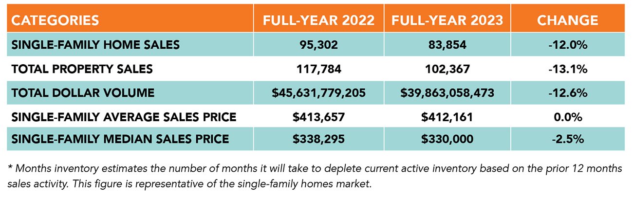 단독주택과 타운하우스 등 총 주택거래량은 2022년 117,784채에서 2023년 102,367채로 감소하면서 총 거래가도 2022년 456억달러에서, 2023년 399억달러로 떨어졌다.