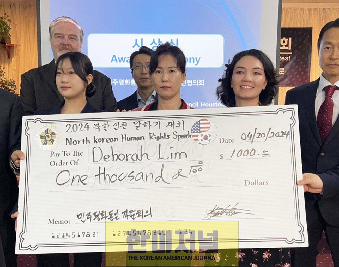 이날 대회에는 총 13명이 참가했는데, 앞서 김형선 평통회장이 말한 대로 휴스턴 지역에 거주하는 탈북자도 참가했다. 평통의 첫 대회 대상(大賞)도 탈북자 출신의 임드보라((Deborah Lim)씨가 수상했다.