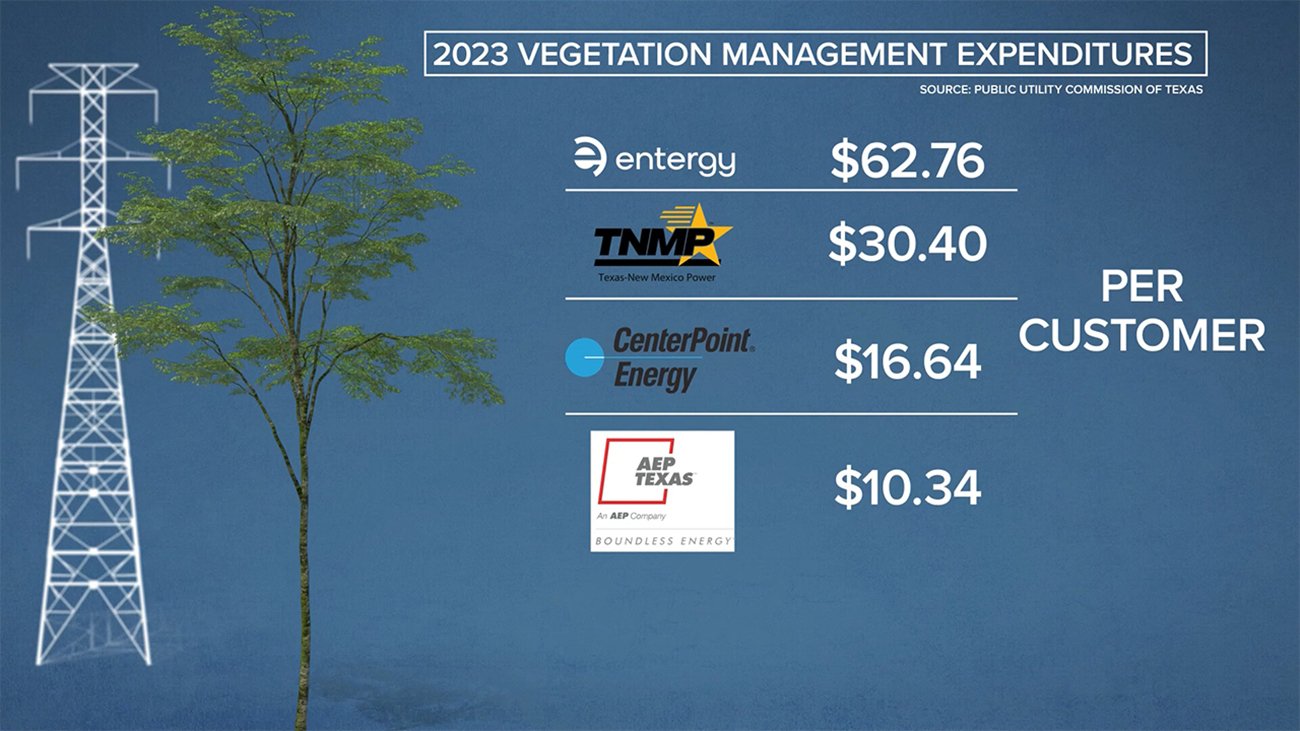 비록 의무사항은 아니지만 전력회사는 나무를 얼마나 많이 제거하고 나뭇가지는 얼마나 정전할지 텍사스 당국에 보고하게 돼있다. 센터포인트는 2023년 3천5백달러를 나무제거와 나뭇가지 정전에 사용했고, 올해는 29,000마일 가운데 3,500마일에 대해 나무제거와 나뭇가지 정전을 하겠다고 보고했다. 하지만 센터포인트는 어느 지역의 나무를 제거할지는 밝히지 않았다.