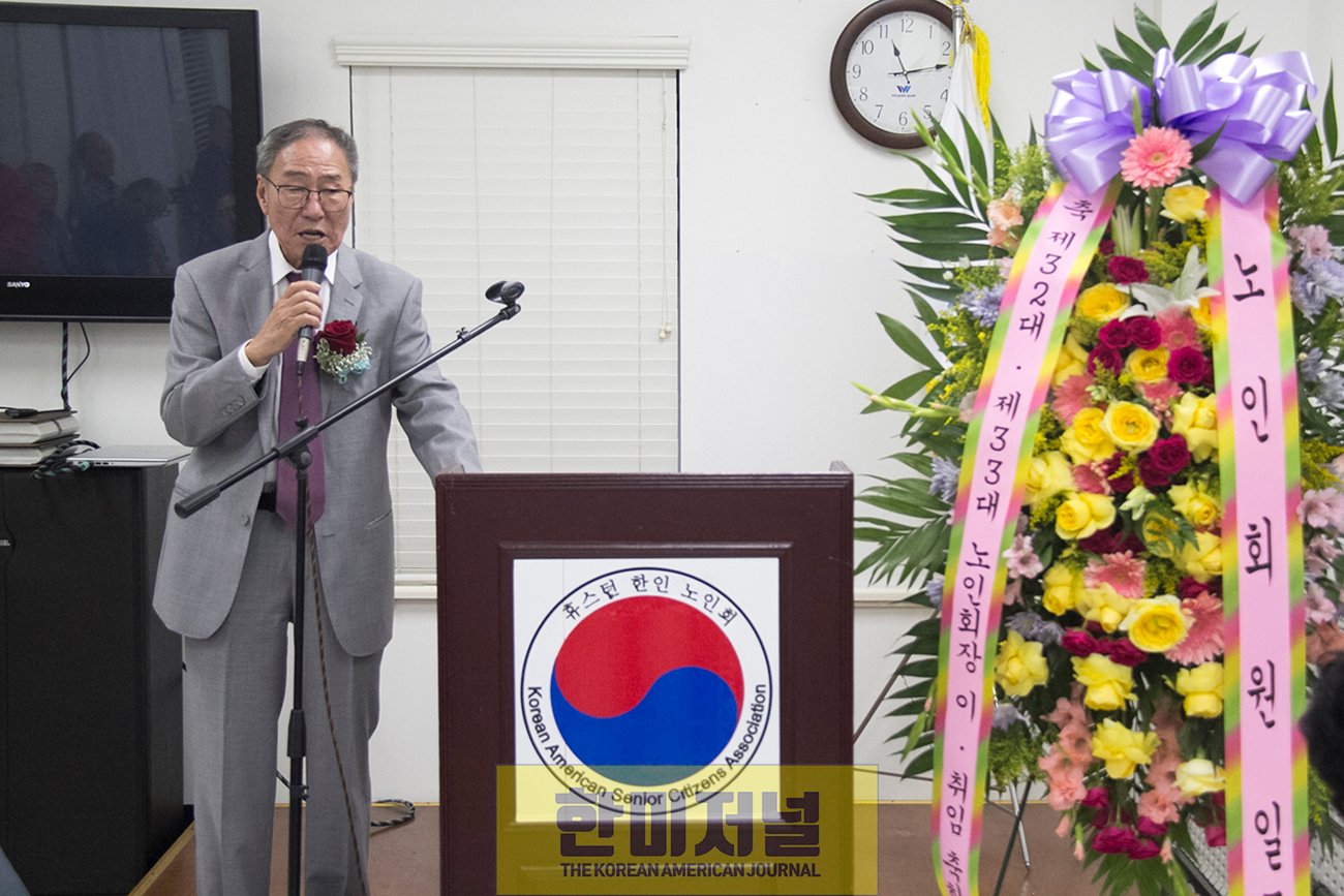 오늘은 이렇게 이·취임식에 참석해 주신 많은 회원님들, 그리고 동포 여러분들께 감사드립니다.특별히 저와 4년을 함께 해주신 우리 임원님들께 특별히 감사드리고, 총무에서 시작해 부회장까지 역임해 주신 전관호 노인회장님께 심심한 감사를 드립니다.그리고 제가 죄송스러운 것은 제 임기가 9월 30일까지입니다.그런데 제가 병원에 갈 일이 많이 생기고 이렇게 쩔뚝거리며 다니고 있기 때문에 일하기가 너무 힘들었습니다. 이런 상황에 전관호 회장님께서도 몸이 안 좋아지셨습니다. 갑자기 수술을 하시고 그래서 둘 다 빨리 쾌차할 수 있도록 여러분들의 기도가 필요합니다.제가 생각하기에는 4개월밖에 안 된 것 같은데 벌써 4년이 지났습니다. 4개월 더 할까요?(웃음) 지난 4년 동안 여러분들의 성원에 힘입어서 저의 임무를 수행할 수 있었던 것 같습니다.물론 공도 있고 과도 있겠지만 다들 너그럽게 봐주시고, 앞으로 수고하실 전관호 회장님과 힘을 합쳐서 우리 동포사회에 모범이 되는 단체가 되길 바랍니다.