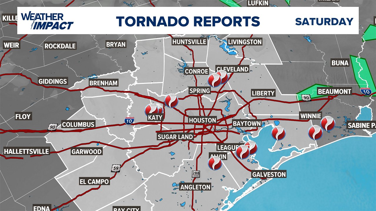 토네이도는 서쪽으로 케이티, 북쪽으로 클리브랜드, 남쪽으로 리그시티 등 휴스턴 다운타운 외각을 빙 둘러 발생했다.