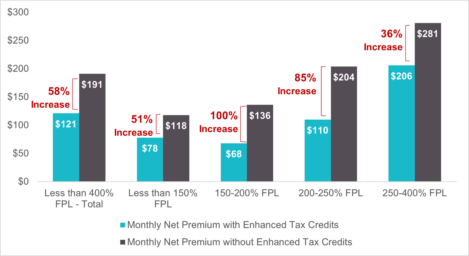 예산정책우선순위센터(CFF)에 따르면, 지난 4년간 세제지원에 따라 의료보험(ACA)에 가입했던 빈곤선 400% 이상 소득자들은 경우에 따라 본인부담금이 3배까지 오를 수 있다. 텍사스에서 빈곤선 400% 이상 소득자들은 대부분 자영업자이거나 시골 지역 주민, 또는 은퇴를 앞둔 연령대가 해당된다.