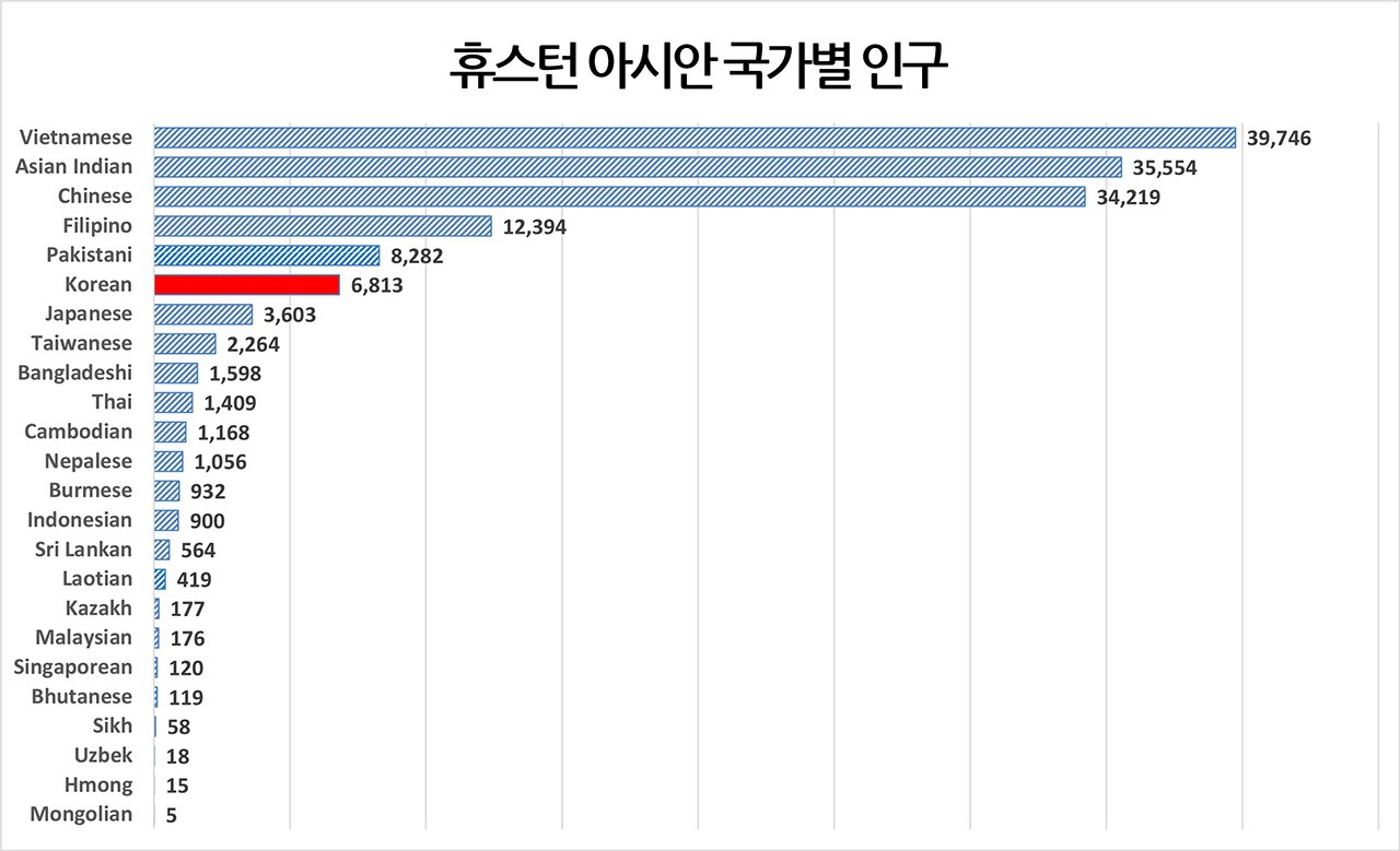 휴스턴 인구는 2,300,419명이다. 인구조사국(U.S. Census Bureau)이 ‘2023년 지역사회조사’(ACS) 5년 추정치에서 밝힌 휴스턴 인구는 2,300,419이다. 같은 조사에서 인구조사국은 휴스턴 아시안 인구는