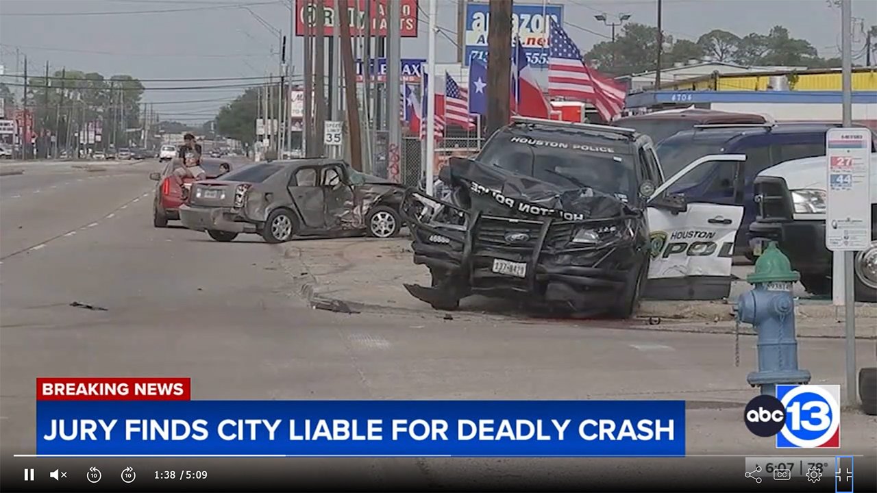 휴스턴시는 휴스턴경찰(HPD) 순찰차와 출동해 사망한 피해자 가족에서 1,300만달러를 배상하라는 판결이 내려졌다고 KTRK-TV가 24일 보도했다. KTRK-TV는 이번 판결은 형사재판이 아닌 민사재판을