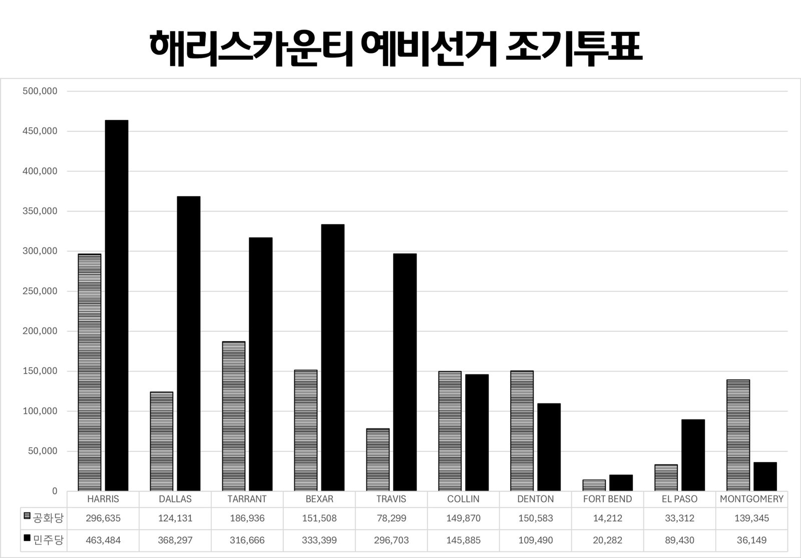 민주당은 또 텍사스 경선 조기투표에 나타난 민주당 투표 열기가 중간선거까지 이어질 것으로 예상해 승리 가능성이 높은 탈라리코에 올인하고 있다. 텍사스 선거를 관리하는 텍사스국무부의 비공식 자료에 따르면 지난 17일부터 24일(월)까지 7일 동안 진행된 조기투표(현장투표와 우편투표 포함)에 1,259,356명이 투표했는데, 이중 민주당이 665,664표로 공화당의 593,692표보다 많았다. 이번 조기투표는 대통령선거 투표율보다 더 높다는 점을 감안하면 이례적 결과다.