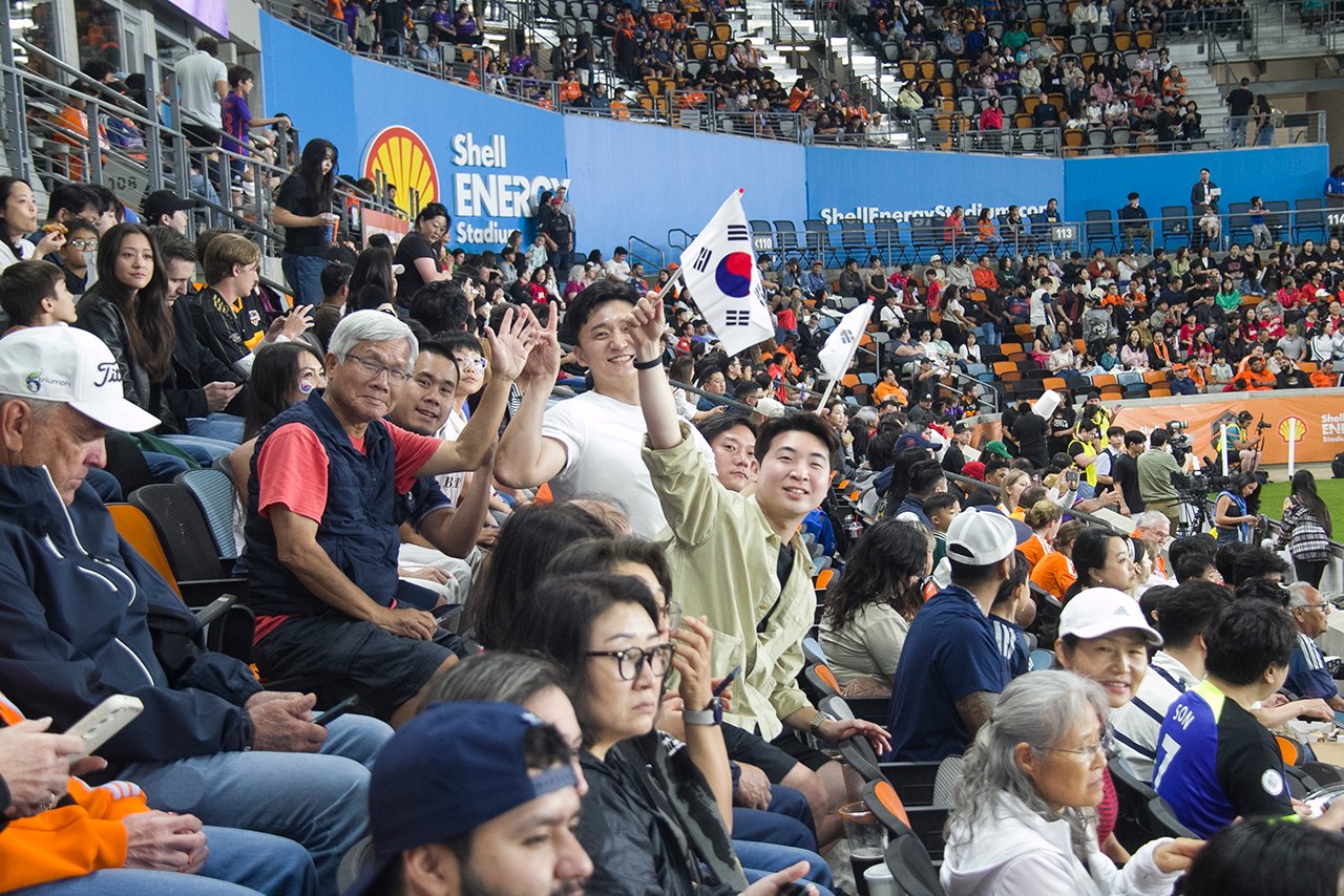 쉘에너지스타디엄(Shell Energy Stadium)에 대형 태극기가 등장했다.