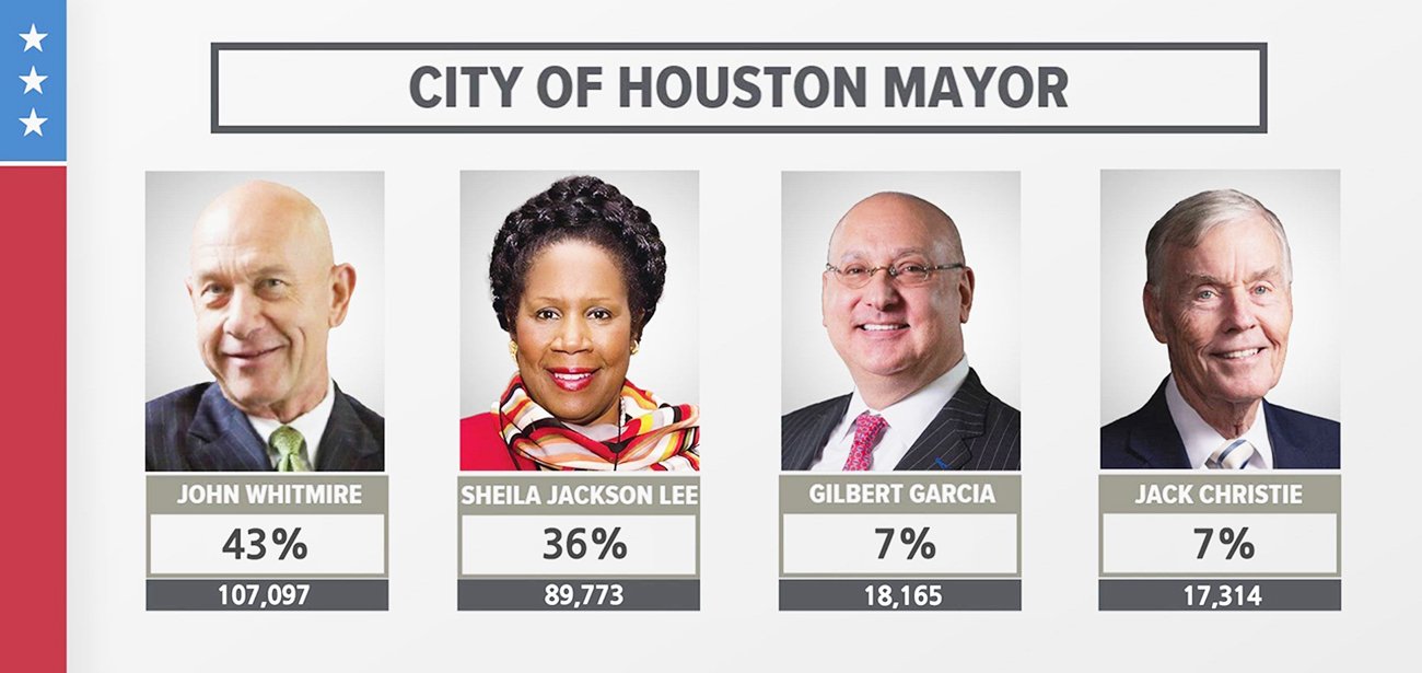 잔 위트마이어 의원이 휴스턴시장에 당선됐다. 17명의 후보가 난립한 가운데 지난 11월7일(화) 치러진 휴스턴 시장선거에서 어느 후보도 과반 이상 득표를 하지